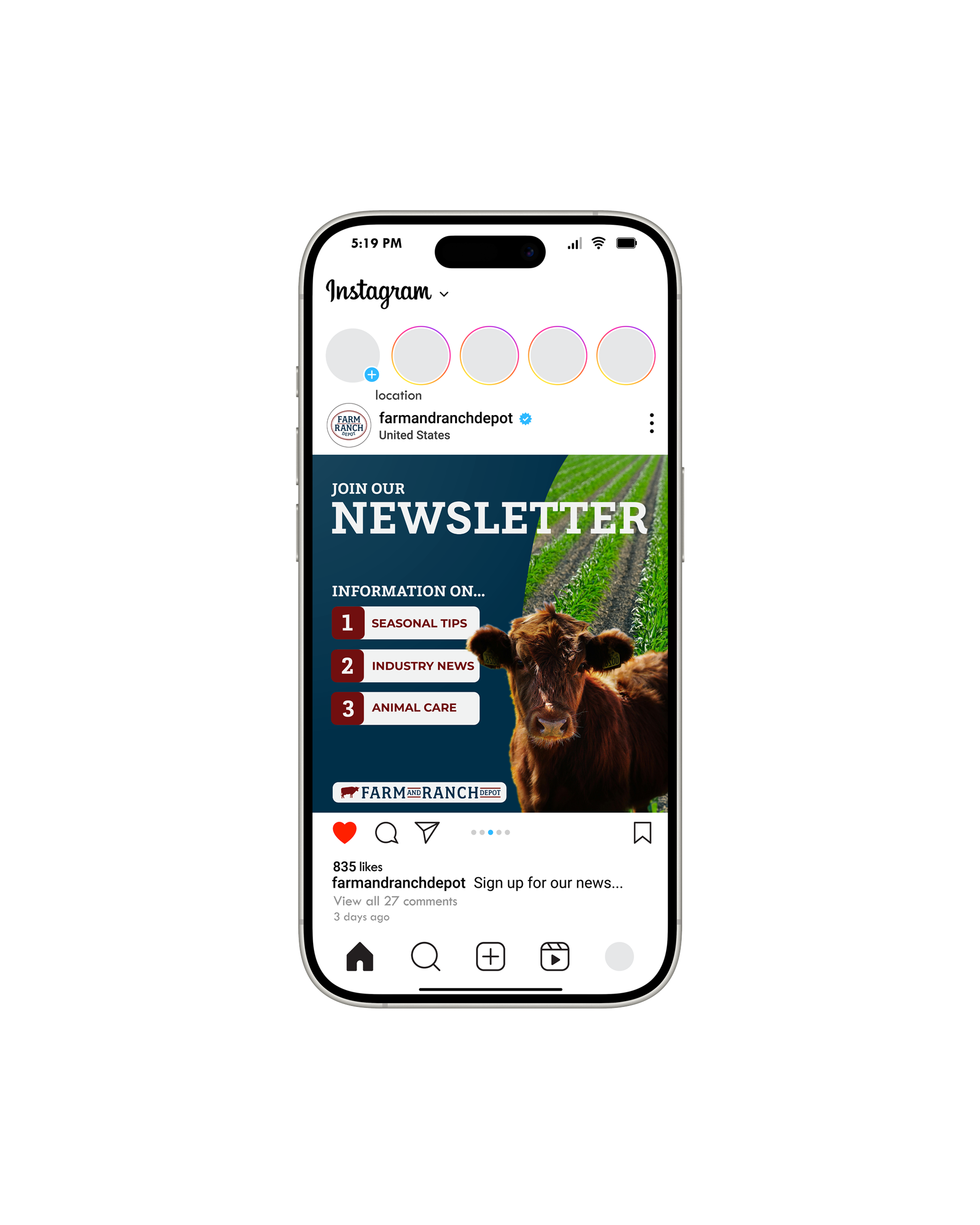 The main issue limiting Farm & Ranch Depot was not its lack of following, but its lack of visibility and engagement. The stagnation of its social media resulted in diminished visibility. Algorithms on platforms like Instagram and Facebook prioritize content that generates interaction and without consistent engagement, Farm & Ranch Depot’s posts were being buried in followers’ feeds, further reducing their reach and impact. Therefore, the challenge was not just creating content but re-establishing a connection, understanding current interests, and delivering value to followers.